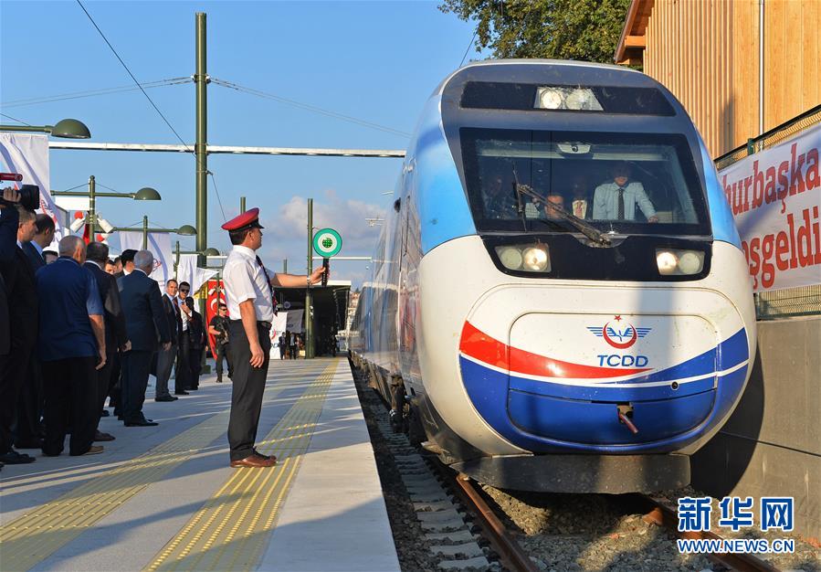 2014年7月25日,首趟安伊高铁列车抵达土耳其伊斯坦布尔站。连接土耳其首都安卡拉和土最大城市伊斯坦布尔的高速铁路二期工程由中国企业参与建设。新华社记者 卢哲 摄