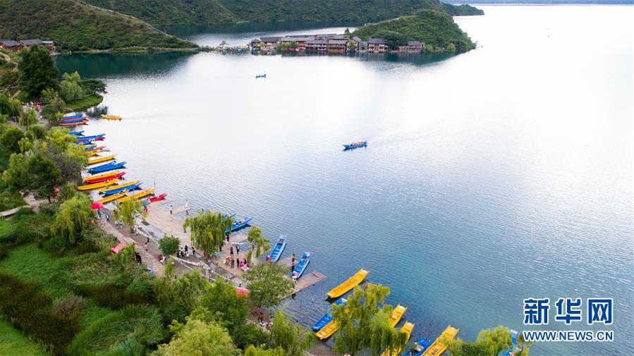 这是云南泸沽湖美景(7月30日无人机拍摄)。 新华社记者 胡超 摄