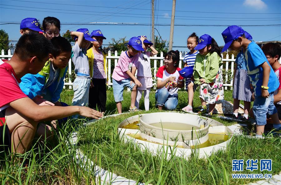8月2日,江苏镇江市宝塔路街道润州花园社区的小朋友在丹徒国家基本气象站的室外气象监测场学习气象知识。 暑假期间,许多小朋友以各种各样的方式充实自己的假期。 新华社发(石玉成 摄)