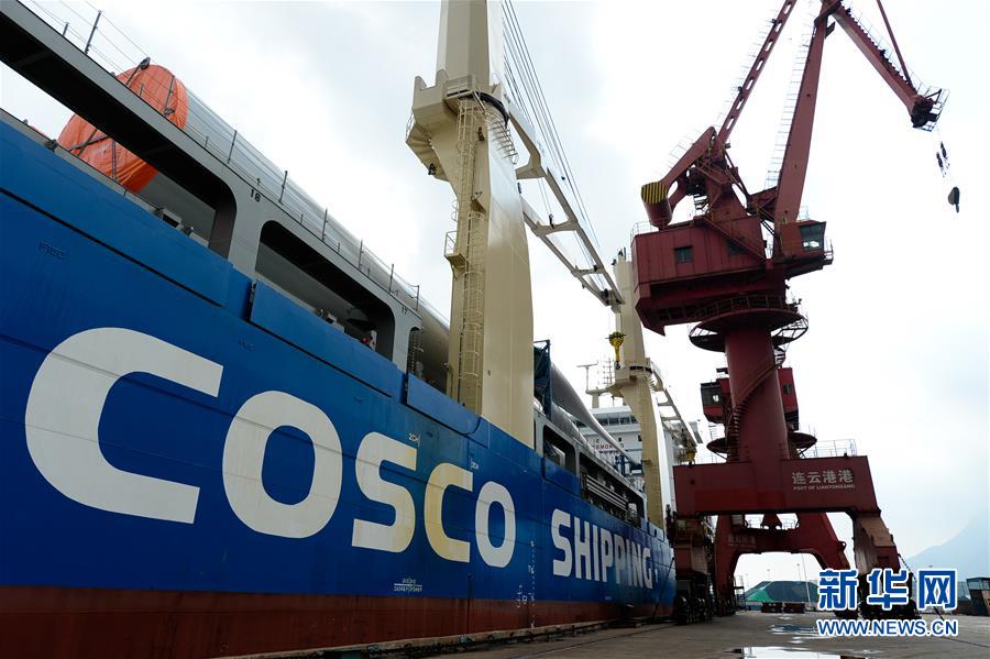 8月4日,“天恩”号货轮停靠在江苏省连云港港口码头。 新华社记者 刘红霞 摄