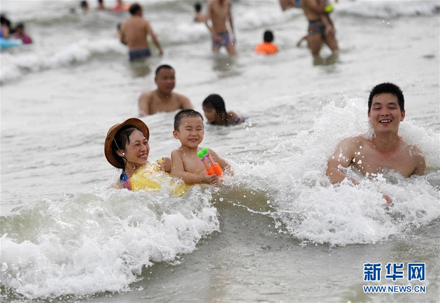 当日,广西北海市银滩引来大批游客,大家在这里戏水游玩,快乐消暑。 新华社记者 陆波岸 摄