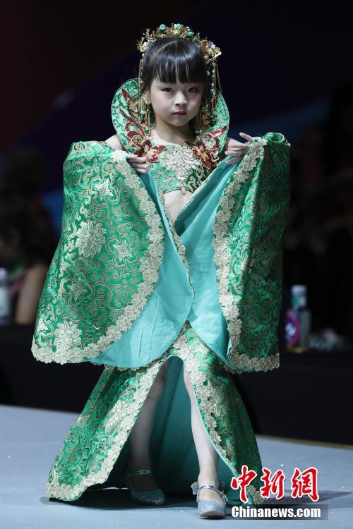 8月4日,由重庆市纺织服装联合会主办、集采(重庆)文化传播有限公司承办的“华侨城·欢乐谷”2018重庆国际少儿时尚周暨中国超级童模精英赛总决赛在重庆市举行。来自北京、重庆、河北等省市的百余名“童模精英”登上决赛舞台一展风采。 中新社记者 盛佳鹏 摄