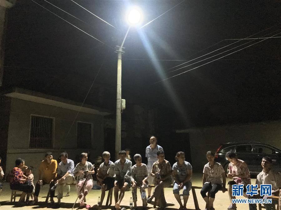 崇阳县铜钟乡的部分村民在参加“湾子夜话”(7月26日手机拍摄)。夜幕低垂,从连绵山岭间吹来的风,给夏夜添了几分凉意。位于幕阜山区湖北崇阳县铜钟乡的坳上村里,村民们结束了一天的忙碌,来到党员群众服务中心前的小广场,与县、乡干部以及驻村扶贫工作队队员们围坐在一起,参加精准扶贫“湾子夜话”。新华社记者 梁建强 摄