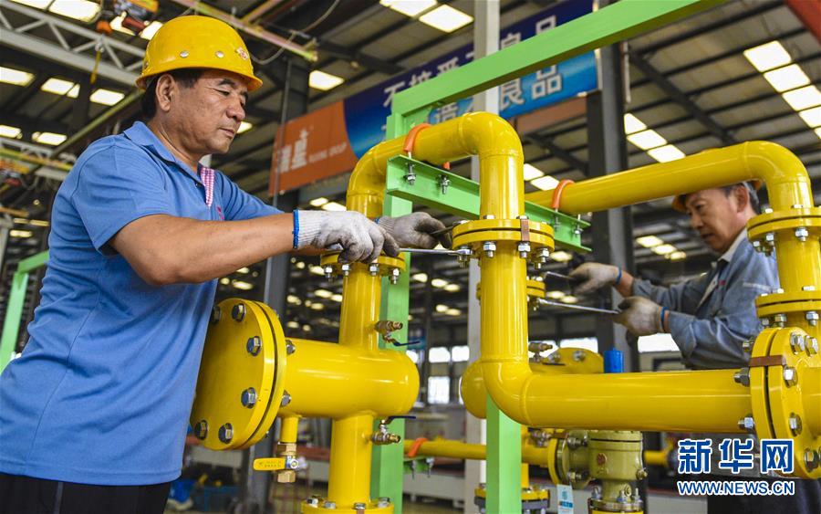 8月10日,通过扶贫专岗就业的村民在河北瑞星燃气设备股份有限公司组装燃气设备。 新华社记者 李晓果 摄