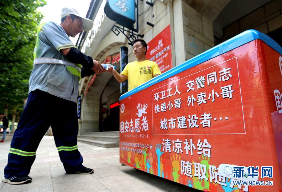 近日,河北固安县街头设立“爱心冰柜”服务驿站,为环卫工人、交警、外卖配送员等高温下的户外劳动者无偿提供冷饮。
