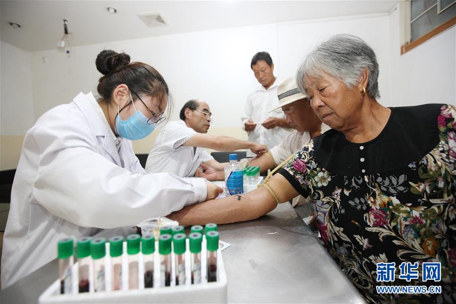 8月10日,在安徽蒙城县国民体质监测中心,来自坛城镇戴园村的贫困户在进行血常规检查。 新华社发(胡卫国 摄)