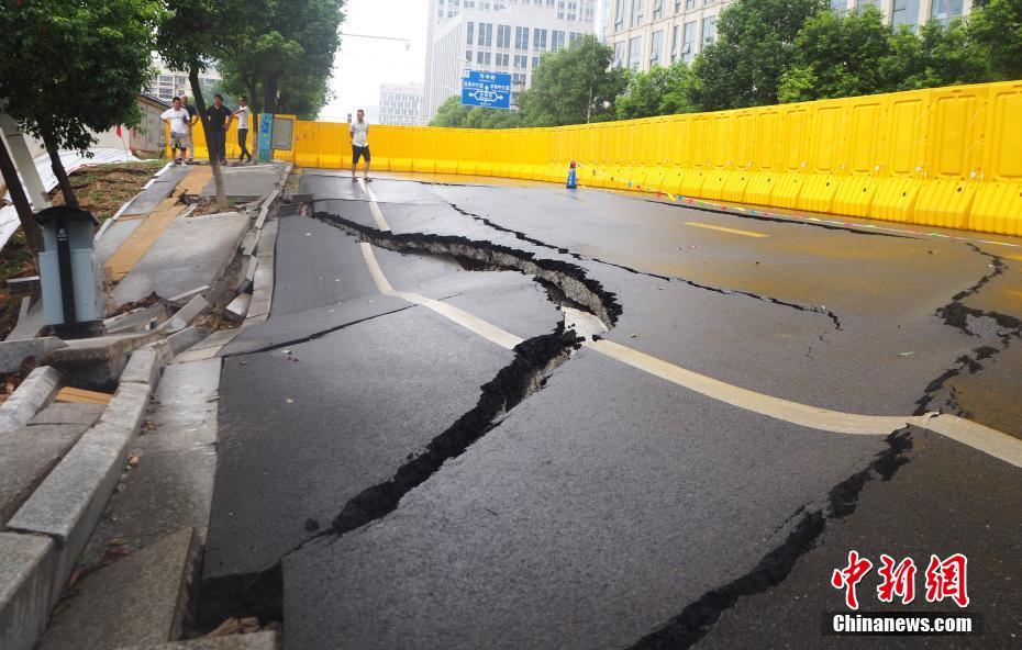 江西南昌一路面出现大面积塌陷 车道下陷围墙开裂