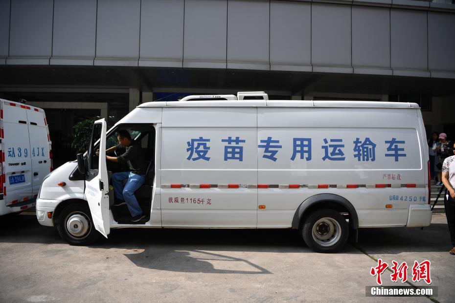 8月13日,运输疫苗的车队准备出发。 中新社记者 刘冉阳 摄