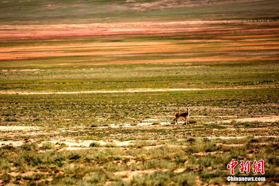 阿拉克湖位于青海省海西州都兰县的巴隆乡,平均海拔4099米。它是海西州最大的淡水湖,也是柴达木河上游主要的内陆吞吐湖。由于青海地区的咸水湖居多,有了阿拉克湖这样不可多得的淡水湖,这里就成为了当地生物繁衍生存的天堂。图为羚羊在草原上悠闲地穿行跳跃。 柴迪成 摄