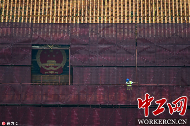北京天安门城楼正在修缮中 广场上每天依然人山人海观光客不断!