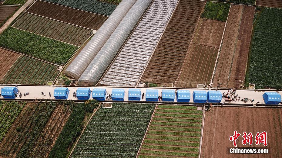8月14日,多顶救灾帐篷搭建在蔬菜田间。当日凌晨3时50分,云南省玉溪市通海县再次发生5.0级地震。 中新社记者 任东 摄