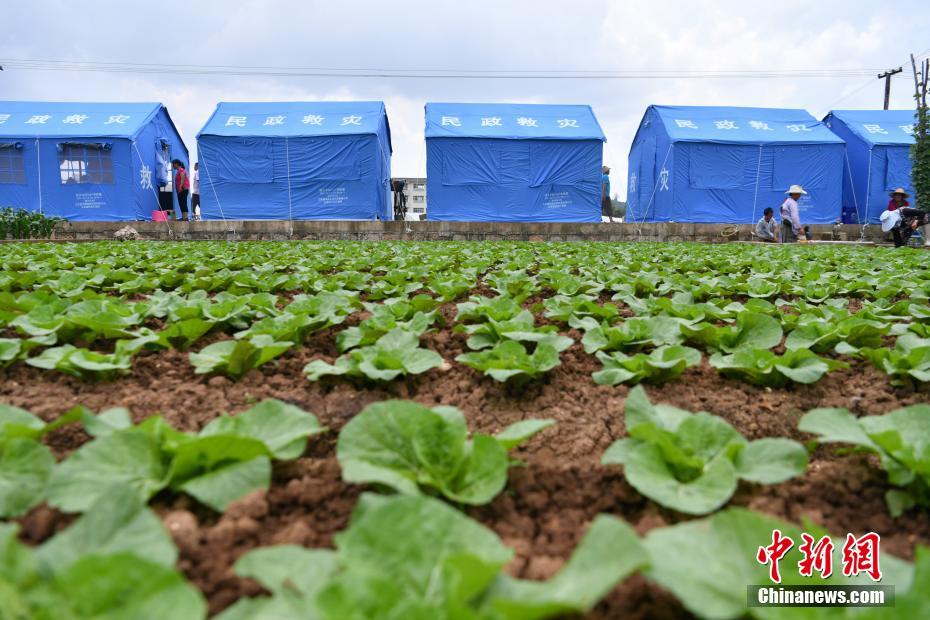 8月14日,多顶救灾帐篷搭建在蔬菜田间。 中新社记者 任东 摄
