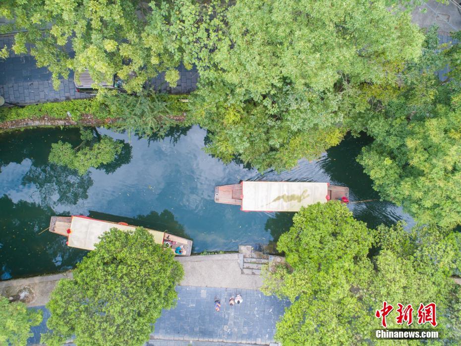 航拍游船穿行于灵渠南渠。 王以照 摄