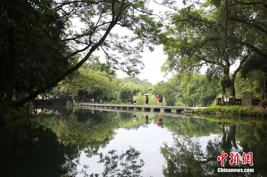 游人行走在灵渠泄水天平坝。 朱柳融 摄