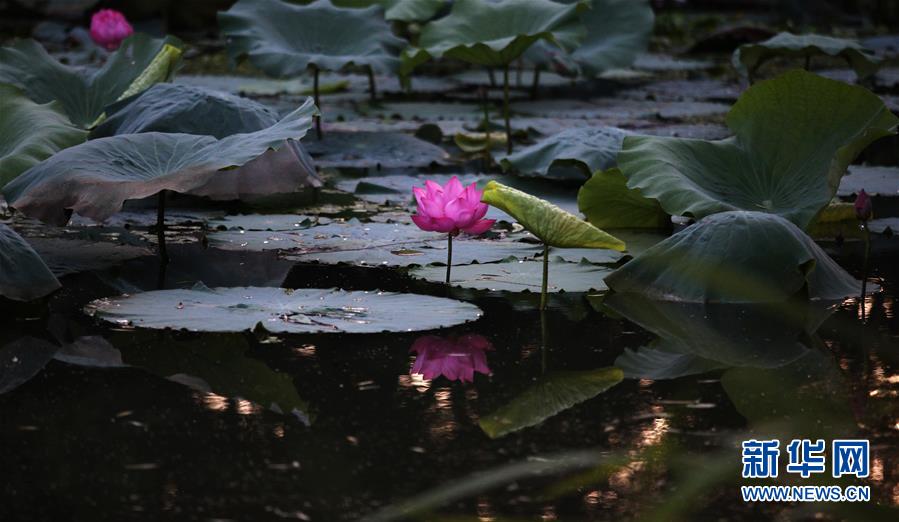 8月14日,扬州市蜀冈-瘦西湖风景名胜区的荷塘内荷花绽放。“末伏”将至,江苏省扬州市蜀冈-瘦西湖风景名胜区的荷塘内荷花绽放,娇艳夺目,吸引市民和游客前来观赏。 新华社发(孟德龙 摄)