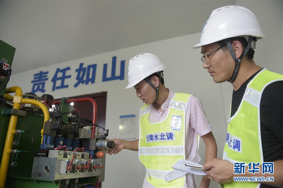 8月14日,南水北调中线干线荥阳管理处工作人员在南水北调索河渡槽进口节制闸巡查设备运行情况。进入汛期,南水北调中线干线河南荥阳管理处密切关注当地天气变化情况,提前制定应急预案,巡查人员加密频次,应急抢险队伍加紧排查设备故障,力保汛期安全供水。新华社记者 鲁鹏 摄