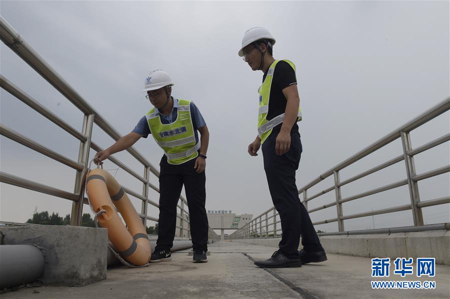 8月14日,南水北调中线干线荥阳管理处工作人员在南水北调索河渡槽附近巡查应急救生装备。进入汛期,南水北调中线干线河南荥阳管理处密切关注当地天气变化情况,提前制定应急预案,巡查人员加密频次,应急抢险队伍加紧排查设备故障,力保汛期安全供水。新华社记者 鲁鹏 摄
