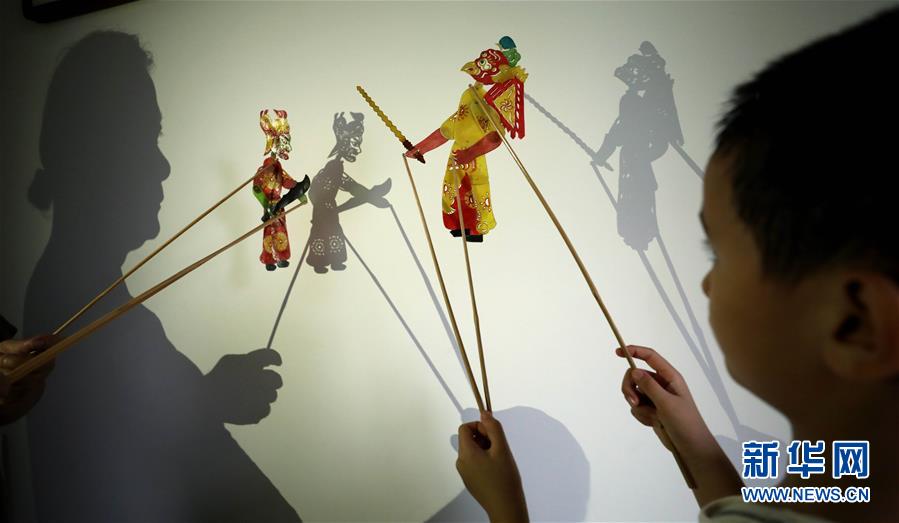 8月14日,李卫与外孙一起表演皮影戏。今年63岁的李卫自小跟随父亲、济南皮影大师李兴堂学习皮影表演。11年前父亲去世,李卫接过了将济南皮影传承发展、不断创新的重任。如今,他制作的“济南名人脸谱系列”作品就是从父亲生前未完成的作品中延伸雕刻而成。从去年暑假开始,每逢周末,李卫都会在济南百花洲免费为市民表演传统皮影剧目,受到市民欢迎。一把刻刀,一线人偶,皮影之于李卫,是一生难以割舍的“伴儿”,他希望有生之年能够将济南皮影戏不断发扬光大。新华社发(赵晓明 摄)