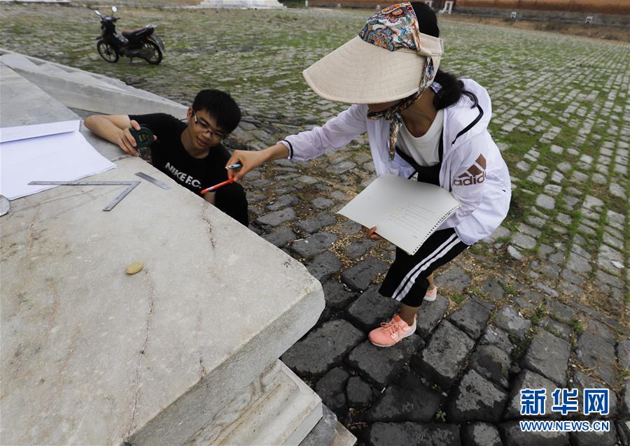 8月13日,天津大学建筑学院学生在清东陵景区进行建筑测量。近年来,河北唐山遵化市清东陵景区积极与高等院校“联姻”,合作拓宽研究领域,目前已与国内多所院校建立了研学关系,成为大学生们的实践课堂。高校学生在实践中增长知识,也为景区建筑、历史研究提供了大量、详实的资料依据。新华社发 刘满仓 摄