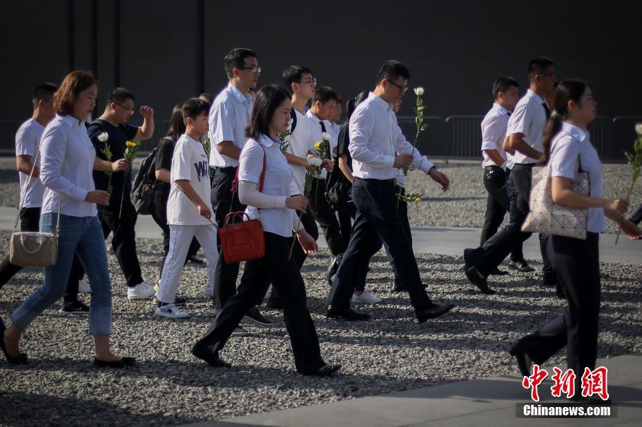 8月15日,民众悼念侵华日军南京大屠杀死难者。当日,侵华日军南京大屠杀遇难同胞纪念馆举行“升国旗,撞响和平大钟”仪式,来自海内外的各界爱好和平人士、纪念馆“紫金草学雷锋志愿服务队”志愿者代表、属地部队官兵、学生代表等来到现场,共同撞响和平大钟,祈愿世界和平。 中新社记者 泱波 摄