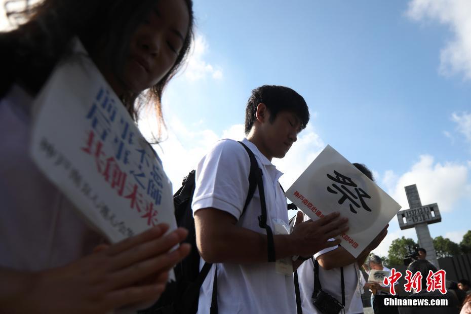 8月15日,日本神户·南京心连心会访华团成员悼念侵华日军南京大屠杀死难者。当日,侵华日军南京大屠杀遇难同胞纪念馆举行“升国旗,撞响和平大钟”仪式,来自海内外的各界爱好和平人士、纪念馆“紫金草学雷锋志愿服务队”志愿者代表、属地部队官兵、学生代表等来到现场,共同撞响和平大钟,祈愿世界和平。 中新社记者 泱波 摄
