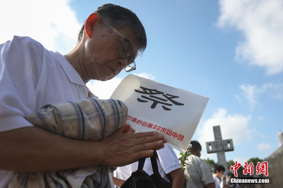 8月15日,日本神户·南京心连心会访华团成员悼念侵华日军南京大屠杀死难者。当日,侵华日军南京大屠杀遇难同胞纪念馆举行“升国旗,撞响和平大钟”仪式,来自海内外的各界爱好和平人士、纪念馆“紫金草学雷锋志愿服务队”志愿者代表、属地部队官兵、学生代表等来到现场,共同撞响和平大钟,祈愿世界和平。 中新社记者 泱波 摄
