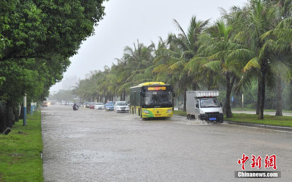 汽车在海口琼山大道积水路段行驶。 吴天军 摄