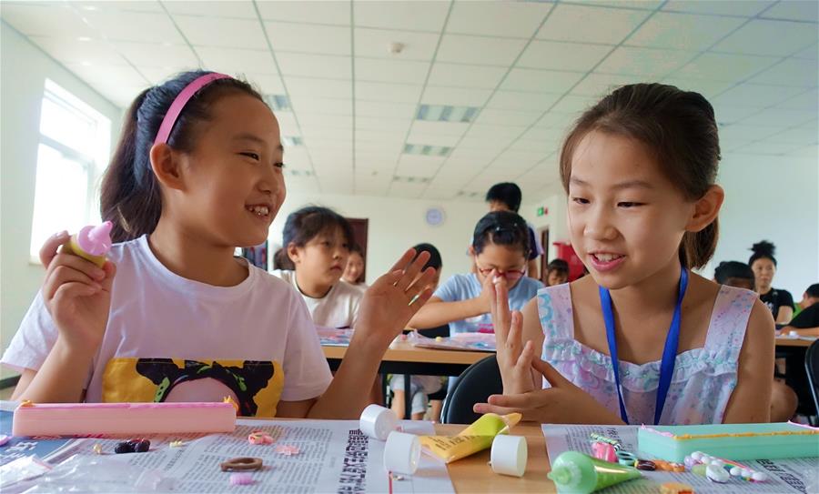 当日,北京市丰台区东高地街道万源南里社区的50多名孩子参加社区组织的暑期手工制作活动。暑期以来,东高地街道各社区每周定期举办三次以上博物馆参观、国学讲座、绘本阅读、手工制作、学生跳蚤市场等暑期活动,丰富社区青少年学生的暑期生活。