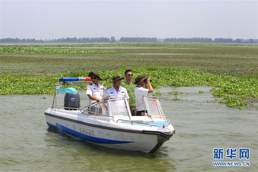 8月15日,小港保护站的工作人员对湖面进行巡查。 洪湖国家自然保护区管理局小港保护站坐落在洪湖中心两条不起眼的旧船上。12名巡湖人常年扎根于此,日夜守护洪湖的生态环境。 洪湖是湖北省最大的湖泊,也是中国第七大淡水湖。一曲“洪湖水浪打浪”让洪湖闻名全国。但由于大量围网养殖等原因,作为国家级自然保护区的洪湖水质急剧恶化,水质从2011年的Ⅱ类恶化到2016年的Ⅳ类。2016年开始,洪湖开始逐步拆除围网、禁止渔业养殖、全面禁捕,对湖泊生态进行修复。洪湖国家自然保护区管理局在湖中设立了三个水上保护站,24小时巡查保护湖区生态,小港保护站就是其中之一。 小港保护站的护湖队员负责26万亩水面的巡查保护。由于管辖范围较大,队员们只能分片区巡湖,转一圈就需要两三个小时,经常还需要与非法捕捞人员斗智斗勇,甚至可能遭遇人身危险。 “虽然条件艰苦,但我们还是要尽最大的努力,保护好洪湖来之不易的生态环境”,小港保护站的副书记范和训说。如今,拆除了全部围网的洪湖,水质已经逐步好转,在保护站工作人员的守护下,非法捕捞的现象也越来越少,当地野生水鸟数量明显增加,“浪打浪”的美景逐步重现。 新华社记者 隋先凯 摄