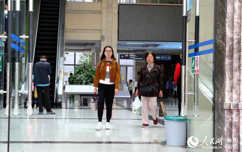梁倩走出医院门诊大厅。(人民网 虎遵会 摄)