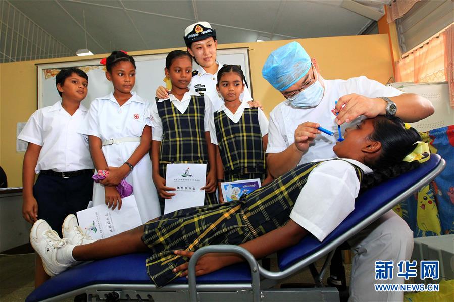 这是2011年11月11日,在特立尼达和多巴哥的西班牙港,“和平方舟”号医院船的医护人员为孩子们进行口腔健康检查。 新华社记者查春明摄