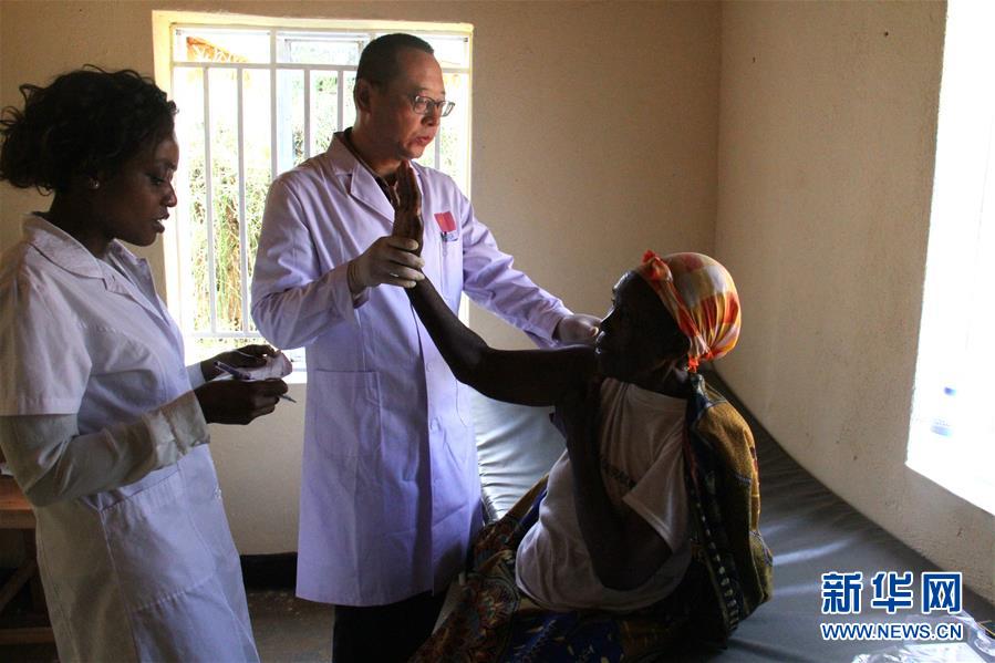 这是2017年11月1日,在卢旺达基本戈地区,中国第18批援助卢旺达医疗队队员为当地居民诊疗。 新华社记者吕天然摄