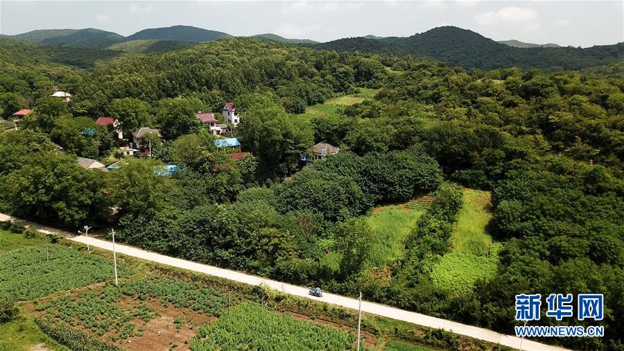 8月14日,孙芳华骑着电动三轮车在安徽巢湖市元通村出诊(无人机拍摄)。 新华社记者 张端摄