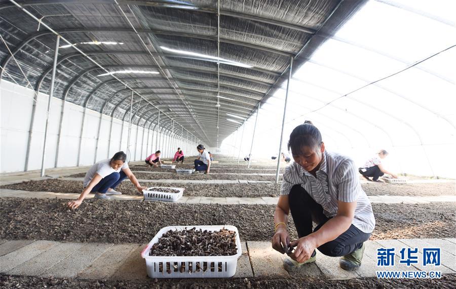 四川省泸州市叙永县近年来在实施脱贫攻坚的过程中,引进黑皮鸡枞菌龙头企业,在麻城镇合作建设集研发、生产、加工、销售为一体的黑皮鸡枞菌产业扶贫项目,带动当地农民脱贫。黑皮鸡枞菌是一种食用药用价值兼具的食用菌,因其气味浓香、口感独特、味道鲜美而受到消费者青睐。目前,叙永县黑皮鸡枞菌产业扶贫项目已进入规模化生产阶段,生产的菌菇主要销往广东、福建、上海等地。 新华社发(李欣 摄)