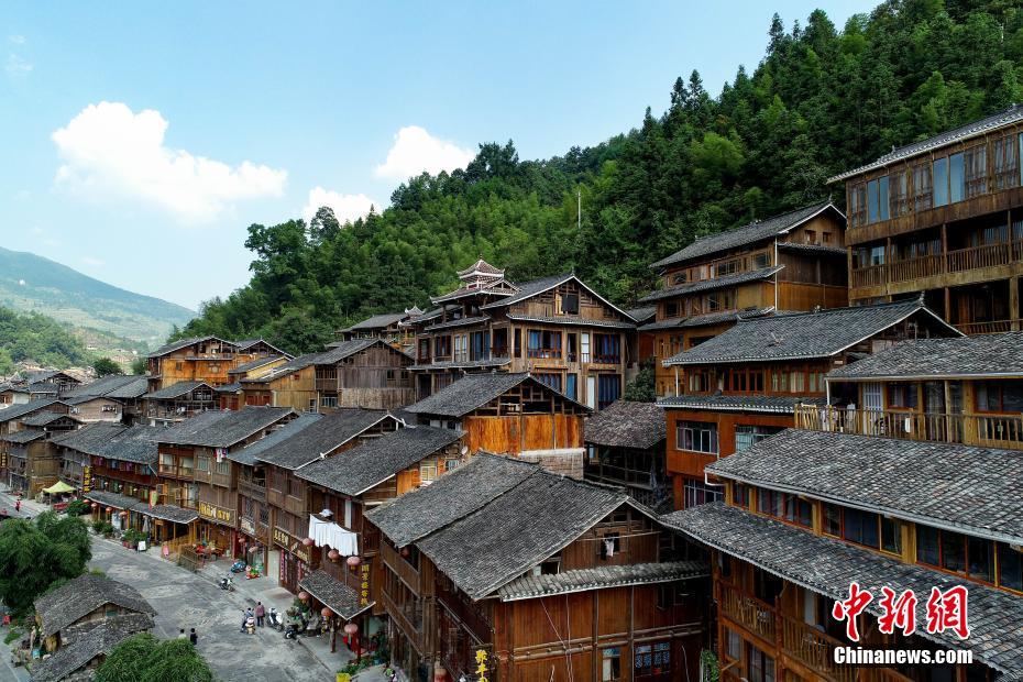 8月22日,航拍传统村落贵州肇兴侗寨夏日风光,侗族木质干栏式建筑鳞次栉比,美不胜收。肇兴侗寨,位于贵州省黔东南苗族侗族自治州黎平县东南部,距今有840多年历史,占地18万平方米,居民1000余户,是中国最大的侗族村寨之一,素有"侗乡第一寨"之美誉。肇兴侗寨是国家4A级旅游景区和首批中国少数民族特色村寨,中国首批民族民间文化保护试点单位。2012年,贵州肇兴侗寨入选第一批中国传统村落保护名录。中新社记者 贺俊怡 摄