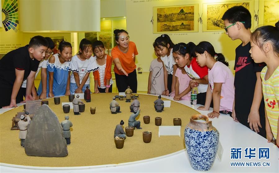 8月24日,在河北省衡水市故城县青竹博物馆,讲解员在向学生们介绍古代颜料制作过程。 新华社记者 李晓果 摄