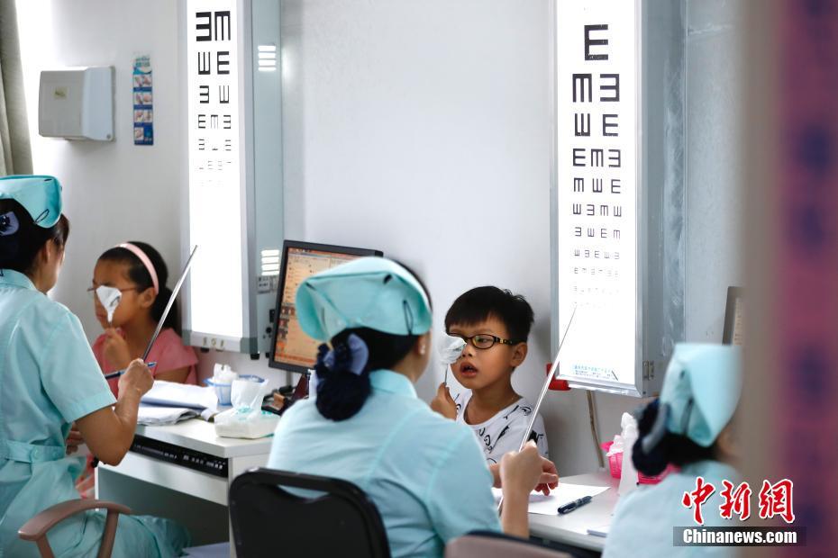 8月25日,小朋友在厦门眼科中心医院验光。当日,“坚守社会责任·坚定文化自信”中央及行业媒体采访团走基层活动走进厦门华夏眼科医院集团。该集团是中国大型眼科专业医疗机构,截至目前已在中国大陆地区开设医疗机构超过50家,旗下医院拥有国家临床重点专科,三甲医院、大学附属医院等。20年来,华厦眼科医院集团始终热心公益事业,“光明基金”累计为患者减免金额达2亿多元,每月定期举办义诊活动,为来自全国各地、城市和农村的贫困患者诊疗。义诊足迹国内最远抵达西藏、宁夏等地,同时还受中国驻外国大使馆邀请,先后8次前往缅甸、尼泊尔、柬埔寨、斯里兰卡等“一带一路”沿线国家开展慈善光明行,为国际光明事业贡献力量。中新社记者 富田 摄