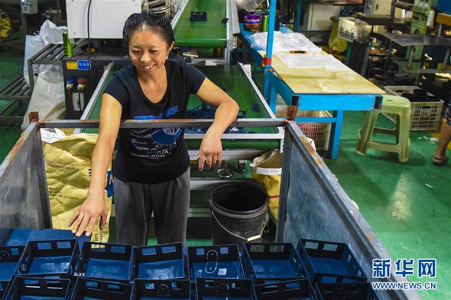 8月28日,在河北省深州市大屯镇陈家口村,村民在企业车间工作。 新华社记者李晓果摄