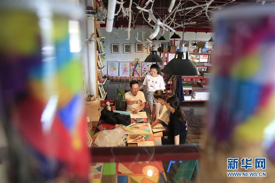 8月28日,在重庆市北碚区缙云幼儿园,教师在制作校园卡通画。 新华社发(秦廷富 摄)