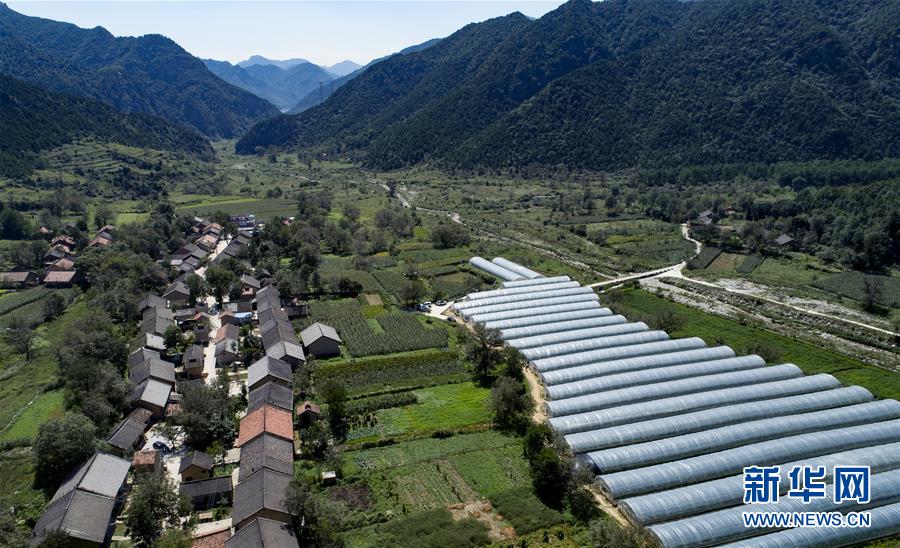 这是陕西省渭南市华州区金堆镇建起的高山西红柿大棚(8月28日无人机拍摄)。 地处秦岭深处的陕西省渭南市华州区金堆镇在推进脱贫攻坚的过程中,按照“一村一品”的产业扶贫模式,通过兴建扶贫基地、发展高山水果西红柿等特色农产品种植,搭建劳动力就业及农产品电商销售平台,初步形成了“镇有平台,村有特色,户有产业”的扶贫格局,所产的高山西红柿等农产品俏销各地,成为山区居民脱贫致富的“金蛋蛋”。 新华社记者 陶明 摄