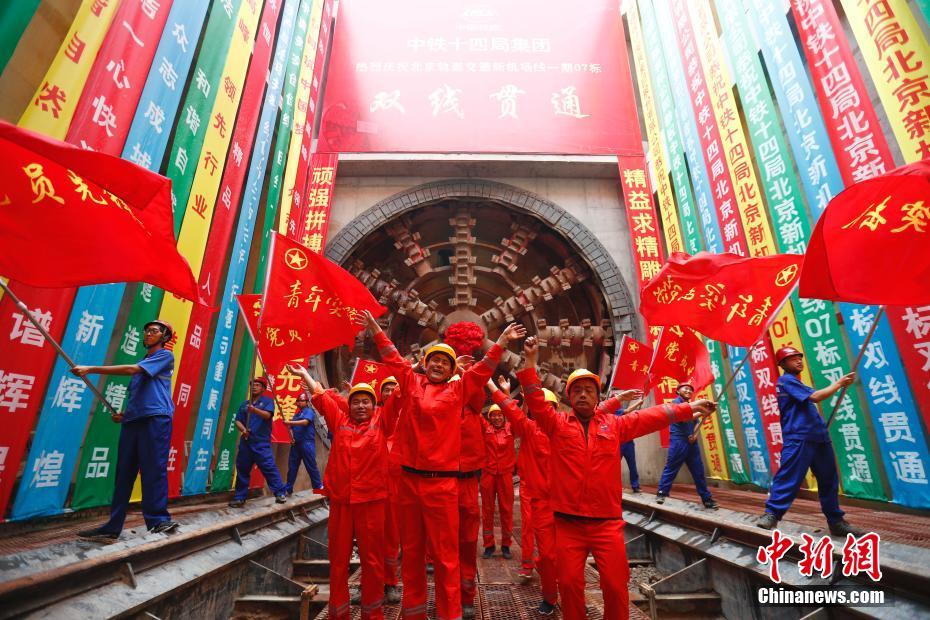 8月28日,随着巨大盾构机刀盘“破土而出”,缓缓抵达接收井,北京轨道交通新机场线最长盾构区段实现贯通,为机场线全线按期通车运营奠定基础。当日,北京轨道交通新机场线中距离最长、施工难度系数极大的盾构区间实现双线贯通。据建设方介绍,目前新机场线一期建设进度乐观,预计明年可全线贯通并开始试运行。中新社记者 富田 摄