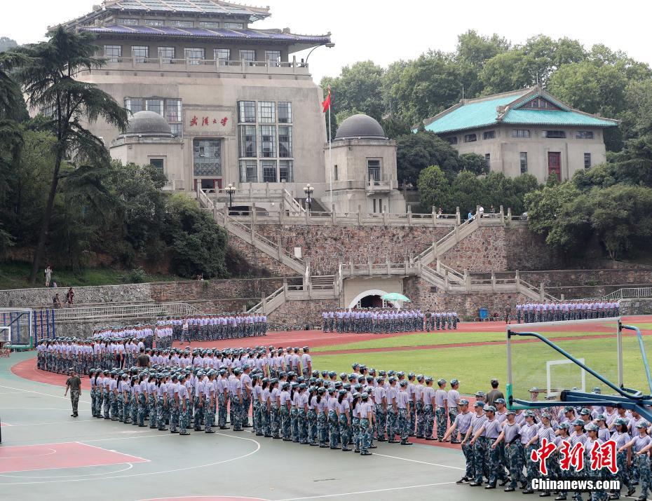 8月28日,武汉大学2018级新生正在军训。中新社记者 赵军 摄