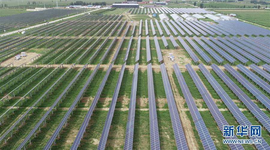这是8月29日无人机拍摄的衡水市武强县武强镇乐郊村集中式光伏扶贫发电站。 近年来,河北省衡水市积极探索“政府+光伏企业+贫困户”的光伏扶贫模式,推进乡村集中式光伏扶贫项目“阳光工程”建设,在具备条件的贫困村建设光伏电站推进脱贫攻坚,帮助贫困人口增收。 截至目前,衡水市已建成村级集中式光伏扶贫电站111座。 新华社记者 朱旭东 摄
