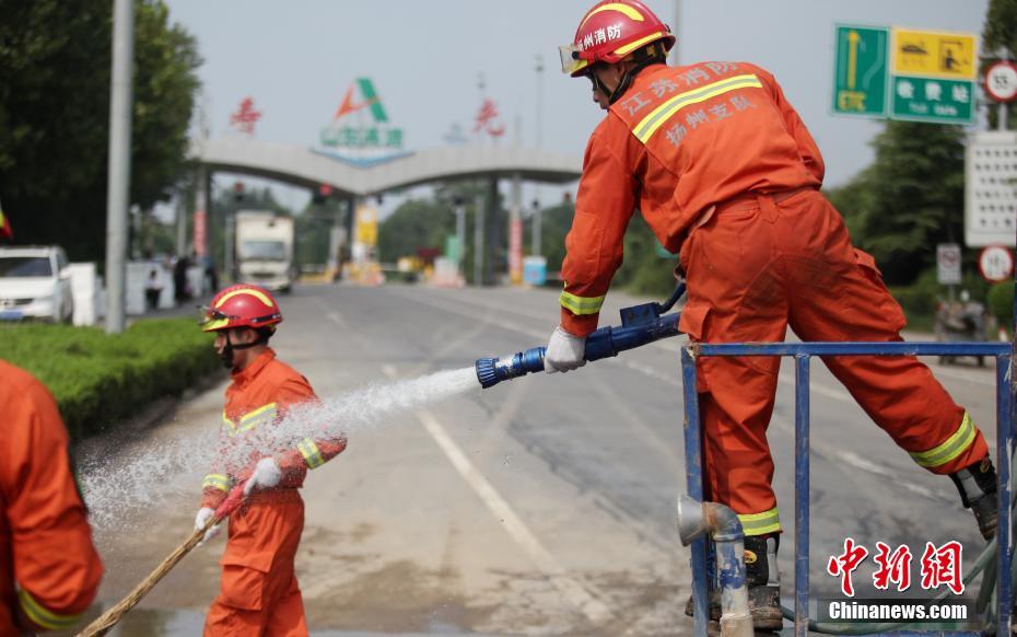 江苏消防官兵驰援寿光灾区进行道路清淤