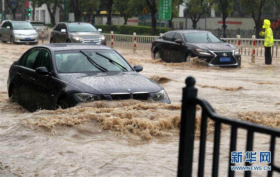 8月29日,车辆涉水经过厦门市思明区湖滨东路。 新华社发(曾德猛 摄)