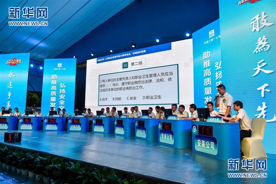 8月29日,中建三局一公司所属单位代表参加安全、环境知识竞赛。 当日,安全、环境知识竞赛暨安全文艺汇演在深圳南方科技大学校园建设工程(二期)项目工地举行,活动以安全环保为主题,通过知识竞赛和音乐短剧、小品、相声等文艺演出形式,宣传强化安全、绿色理念。 新华社记者 毛思倩 摄