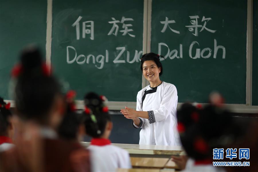 8月29日,在贵州省榕江县栽麻镇加利小学举行的开学第一课上,民间艺人杨换珍教学生唱侗族大歌,让学生感受非遗魅力。 开学在即,各地开展内容丰富的开学第一课,学生们在实践中增长知识、锻炼技能、磨练意志,以昂扬风貌迎接开学。 新华社发(杨成利 摄)