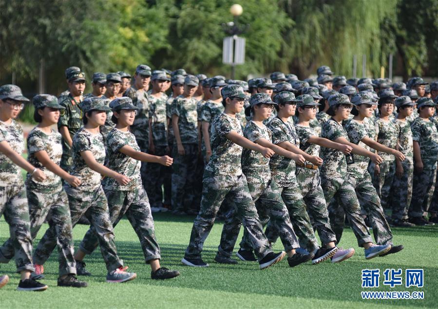 8月30日,河北衡水中学高一新生在军训中进行队列训练。