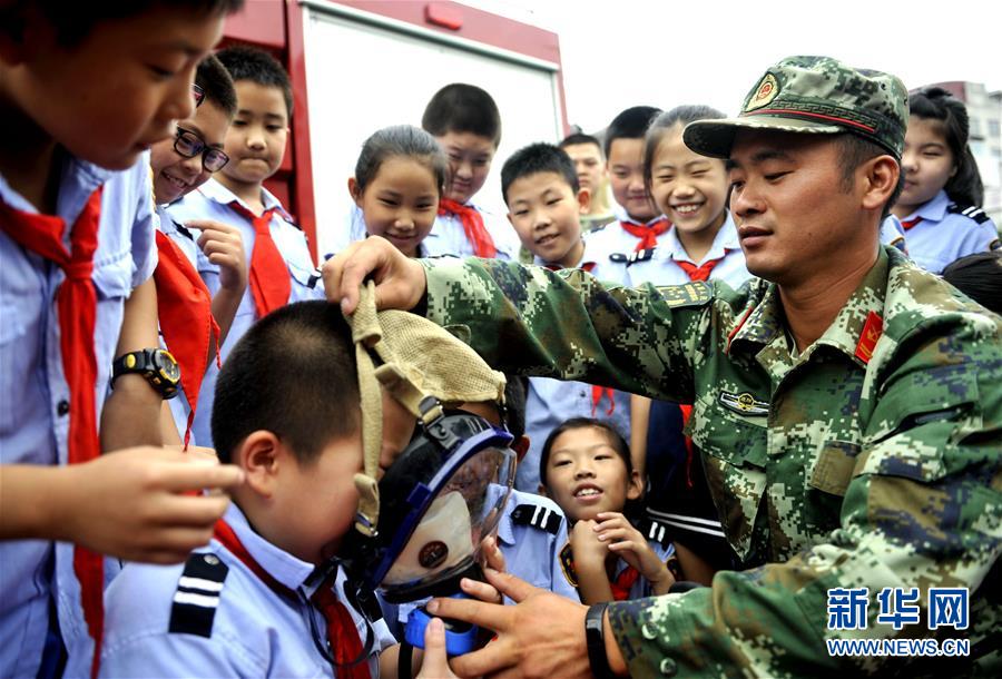 8月30日,在承德市避暑山庄小学,消防战士为学生讲解消防器材使用方法。 当日,河北省承德市双桥区消防大队与承德市避暑山庄小学联合开展消防安全教育“开学第一课”。学生们在消防官兵的指导下,体验使用消防器材,参加消防逃生演练,提升消防安全意识和自救能力。 新华社记者 王晓 摄