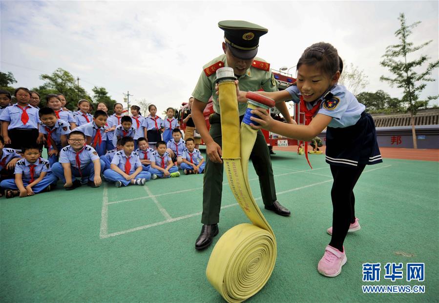 8月30日,在承德市避暑山庄小学,学生在消防战士指导下体验使用消防水带。 当日,河北省承德市双桥区消防大队与承德市避暑山庄小学联合开展消防安全教育“开学第一课”。学生们在消防官兵的指导下,体验使用消防器材,参加消防逃生演练,提升消防安全意识和自救能力。 新华社记者 王晓 摄